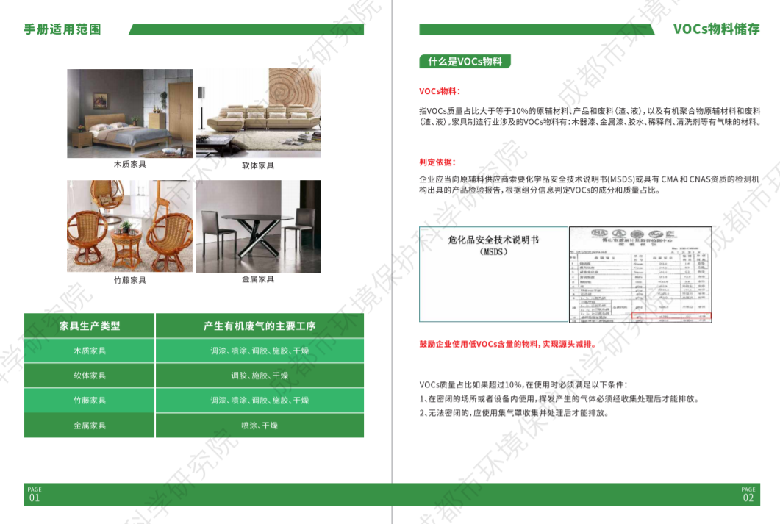 為此,我們有針對性的編制了《成都市家具行業小微企業揮發性有機物治理手冊》,以圖文并茂的形式,對家具行業VOCs排放特征、收集與治理要求等方面進行了通俗易懂的分析說明,讓家具制造行業企業有可參照、可依據、可使用的范本。
